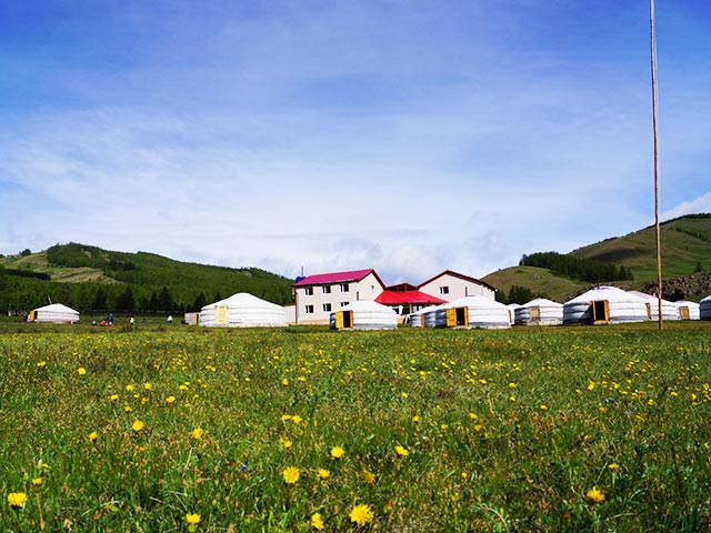 テレルジ国立公園。本日はテレルジ国立公園へのトレッキングに出発します。途中で、ユニークな自然の岩山「タートルロック」とアリヤバラ瞑想僧院を見学します。 テレルジ国立公園はウランバートル市から70kmの場所に位置し、ヘンティ山脈南西部のステップ地帯を代表する景観です。 この地域は、浸食された岩山、松林に覆われた山々、そして多年生の野花やエーデルワイスが咲き誇る草原が広がる、壮大な渓谷です。ツーリストキャンプで昼食。ツアーチームと合流後、旅の準備と乗馬の練習を行います。ゲルキャンプで宿泊します。