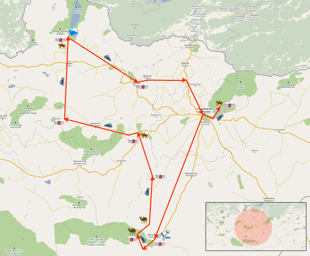 | 行き先 | 南ゴビ、ウブルハンガイ、アルハンガイ、フブスグル、ボルガン、テレルジ国立公園 |